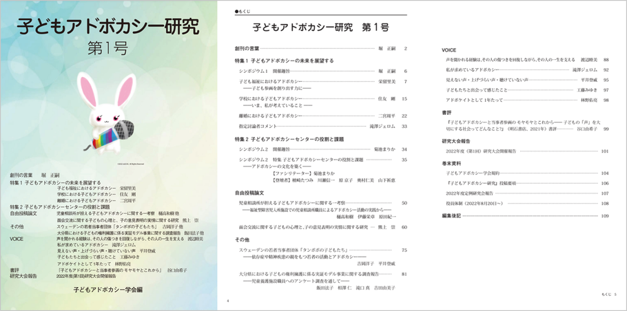 学会誌は、「すべての人が研究者であるという理念(本学会規約第3条)」に基づいた、子どもアドボカシーの有形の情報リソースです。みなさまからのご投稿をお待ちしております。